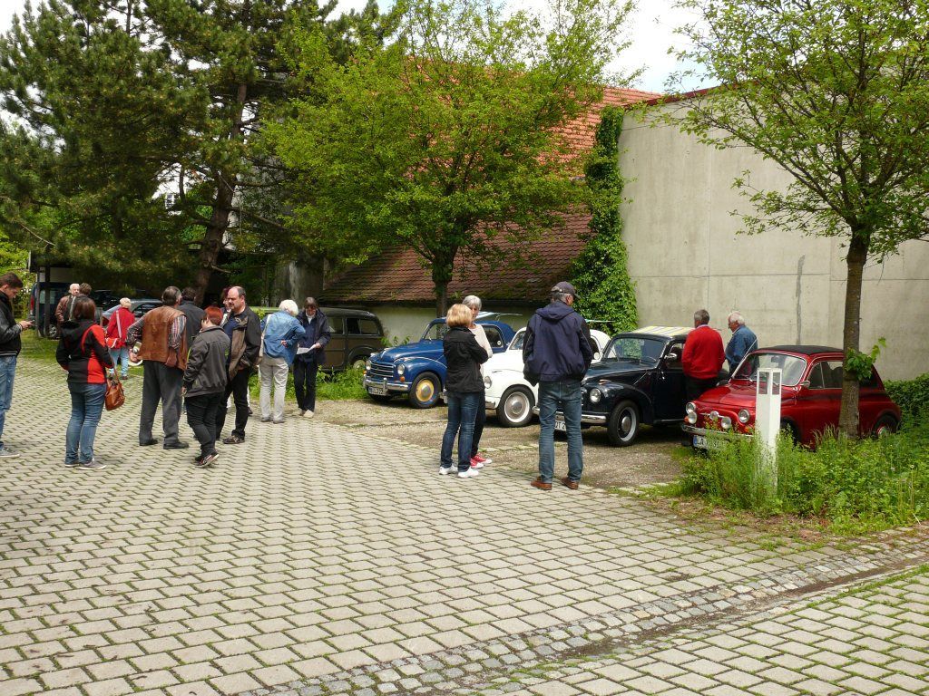 62 PKW, 7 Motorräder (trotz anfänglichem Regen), 1 Motoradgespann und ein Velorex sind am Kaufland gestartet und mit einer Ausnahme pannenfrei angekommen. Strecke vom Tourenhäuptling Paul Einertshofer war hervorragend geplant und hat Anerkennung verdient. Paul Junior machte mit seinem VW Käfer den Führer, hatte sogar die Motorradler als Scout hinter sich und den ganzen Konvoi gut zusammengehalten. Trotz schlechtem Wetter noch eine ordentliche Teilnehmerzahl. Beim “Alten Wirt“ in Eresing hat alles bestens beim Schweinsbraten mit Knödel geklappt und geschmeckt.