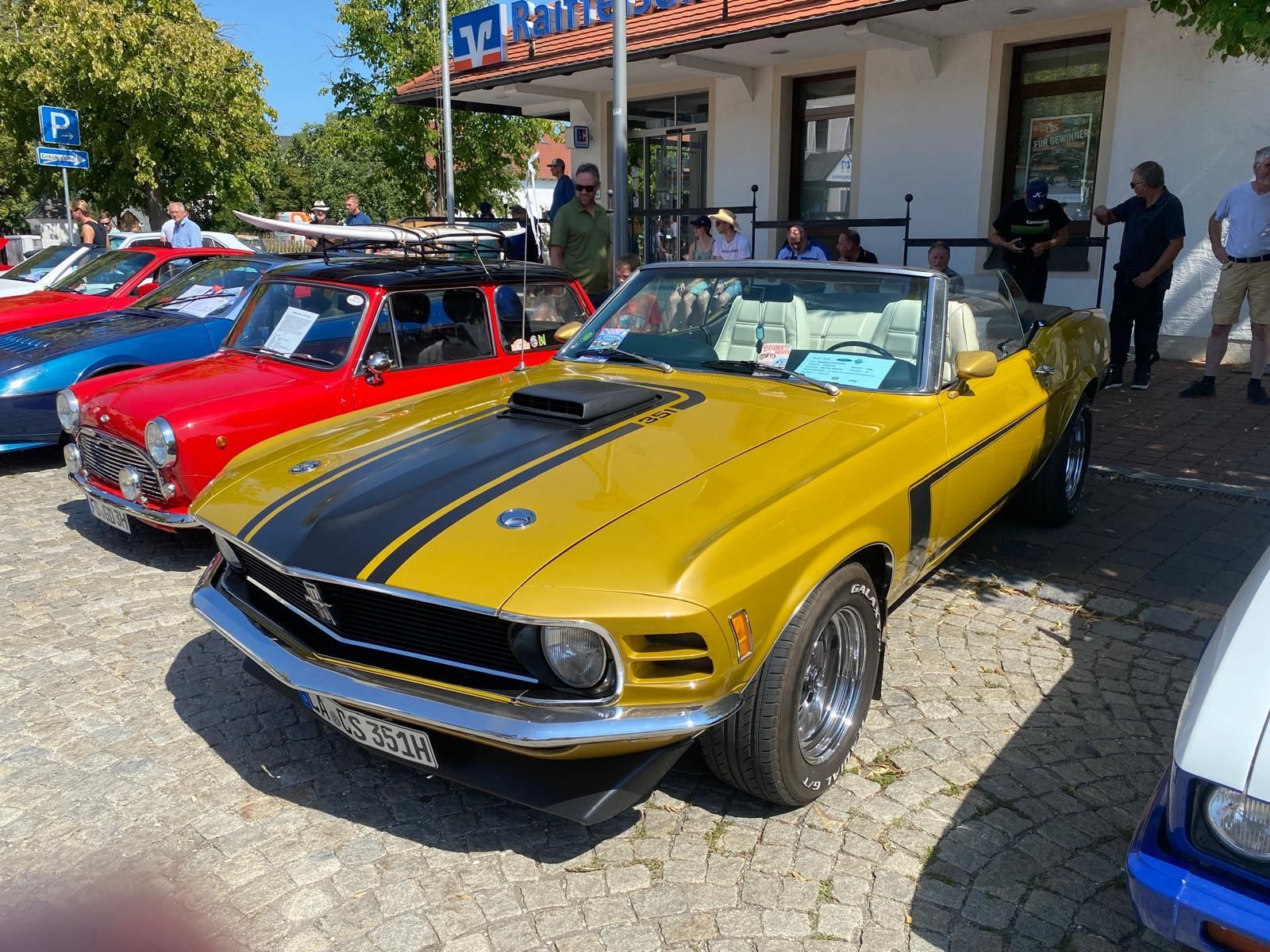 Auf dem Hauptplatz und den Nebenstraßen konnte man die ganze Vielfalt an Oldtimern bewundern. Amerikaner, Engländer, Italiener, Franzosen, Schweden und natürlich auch Deutsche. Der Nähe zu Dingolfing war sicherlich die auffällige Präsenz von Modellen der Firma Glas geschuldet. Dazu kamen noch eine gehörige Anzahl von alten Traktoren. Zum Besuch des gleichzeitig stattfindenden Volksfestes diente ein Mini Moke als Shuttlefahrzeug.